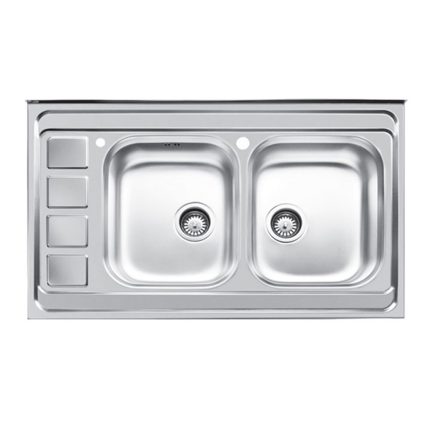 سینک بیمکث Bs 934 توکار این مدل سینک آشپزخانه دارای دئو لگن با نصب به صورت توکار و عمق لگن 20 سانتی متر میباشد. استیل استفاده شده در این محصول 304 میباشد که با ضخامت 0/7 میلیمتر میباشد