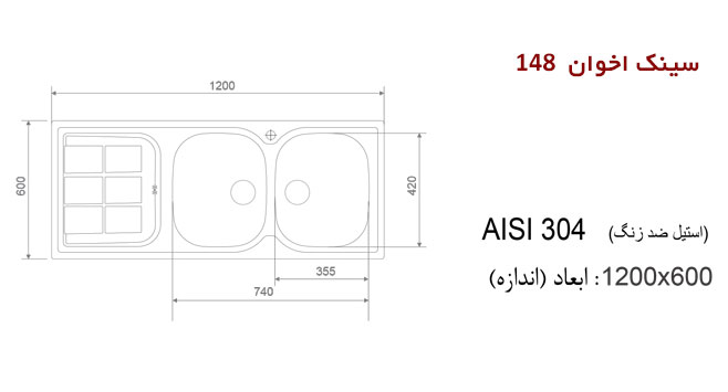 نام محصول : سينک ظرفشویی اخوان 148 | Akhavan sink 148 outset