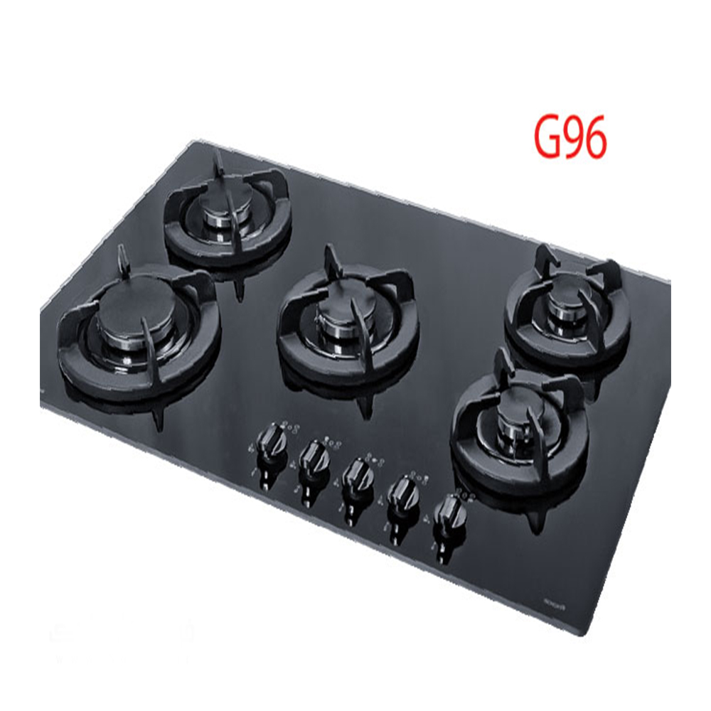 گاز اخوان مدل G96HE عرض 78 این مدل اجاق با نمای شیشه سکوریت مشکی دارای 5 شعله دارای 1 شعله بزرگ , 2 شعله متوسط , 2 شعله کوچک بدون پلوپز