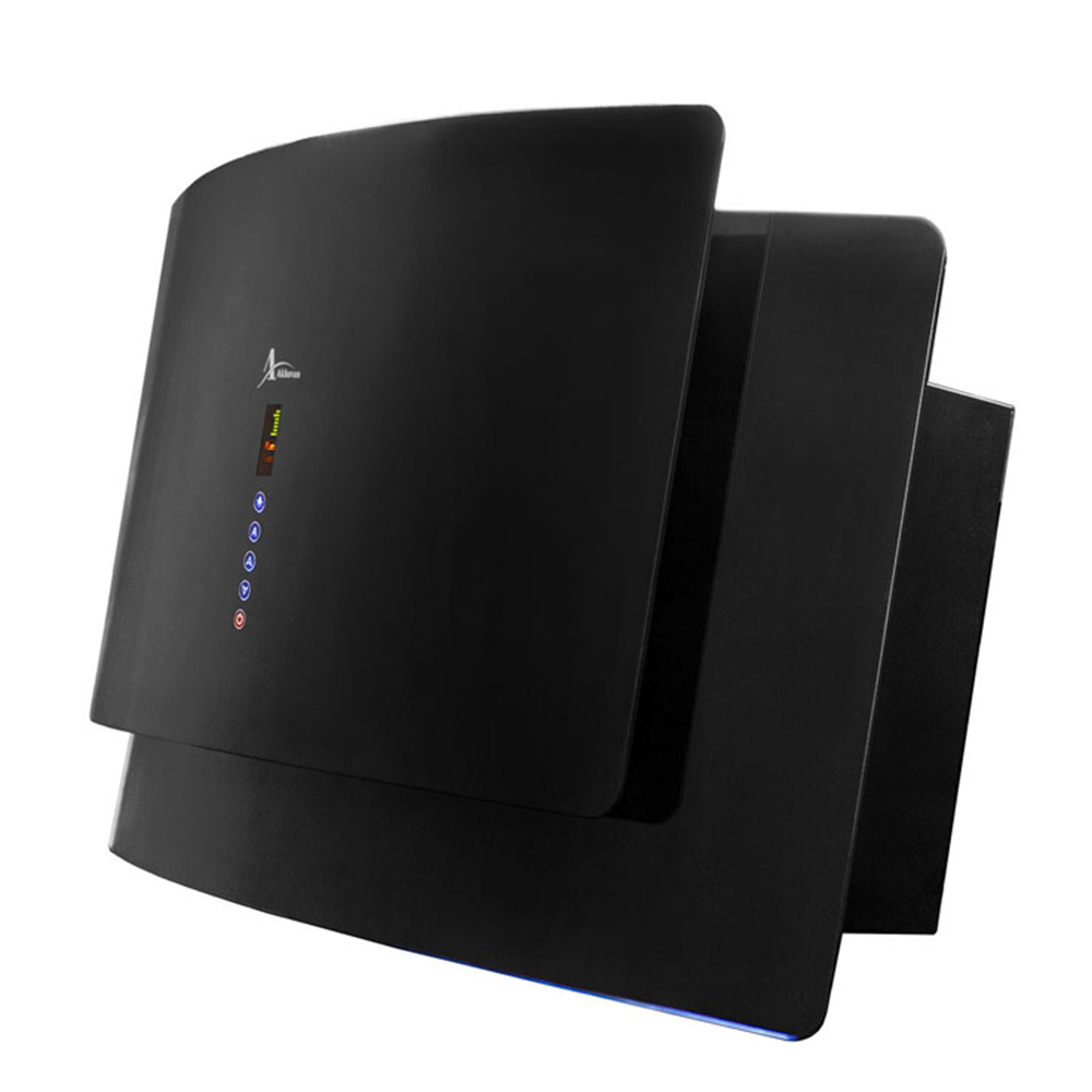 هود اخوان مدل H61 – MF فلزی با نمای شیشه مشکی منحنی ( مقاوم در برابر حرارت و ضربه ) و سایز عرض 90 سانت این محصول با صفحه نمایشگر لمسی یکی از جدیدترین های کارخانه میباشد. از ویژگی های این محصول میتوان به پوسته موتور فلزی اشاره نمود