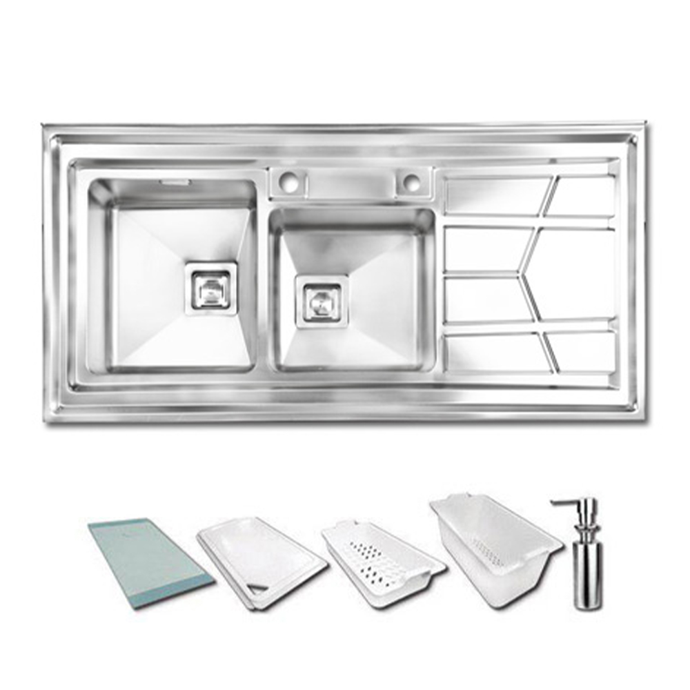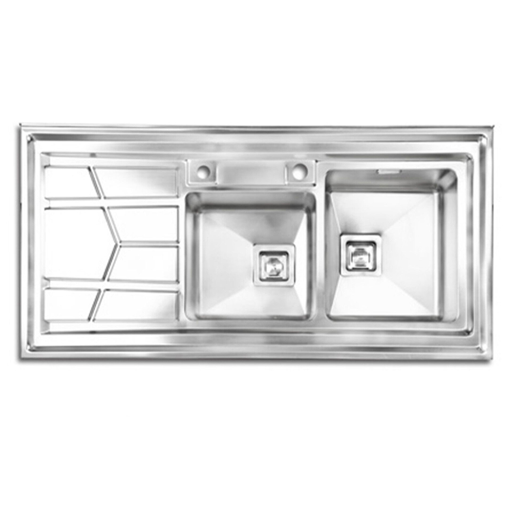 سینک اخوان 303 روکار این مدل سینک ظرفشویی آشپزخانه دارای عمق لگن 20 سانتی متری به همراه ورق استیل 304 با ضخامت 1 میلیمتر و سیفون فانتزی با تخلیه سریع ارائه میگردد