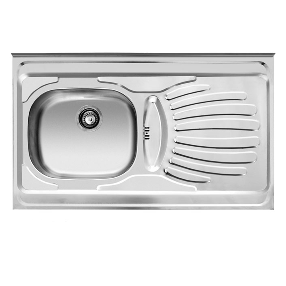 سینک اخوان کد 38 با نصب روکار و ابعاد 100 * 60 سانتی متر. این محصول دارای سر ریز جداگانه بر روی سینی و طراحی زیبا سینی و لگن میباشد