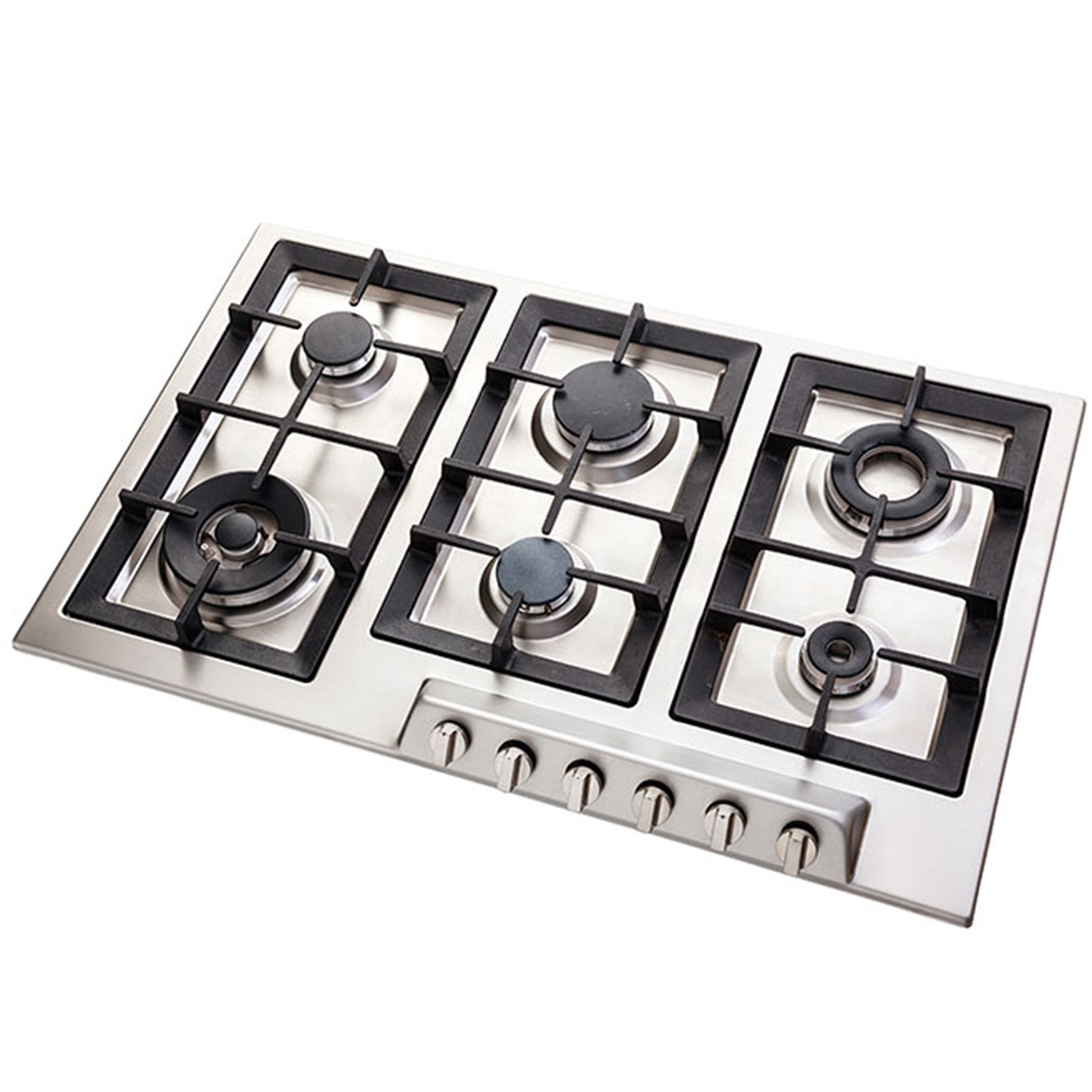 گاز استیل البرز مدل S 6902 با نمای استیل و 6 شعله این محصول ساخته شده با قطعات کشور ایتالیا و ضمانت استیل البرز به همراه 2 شعله شف و پلوپز سمت چپ