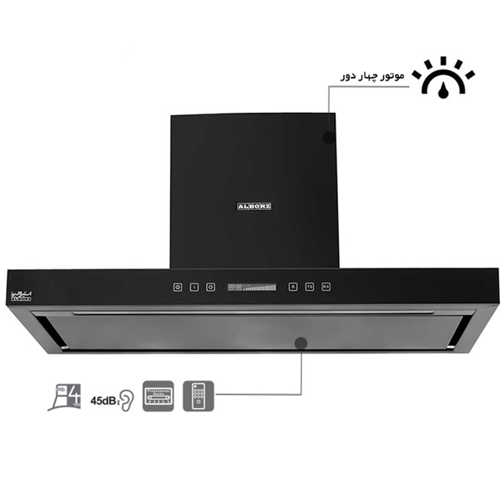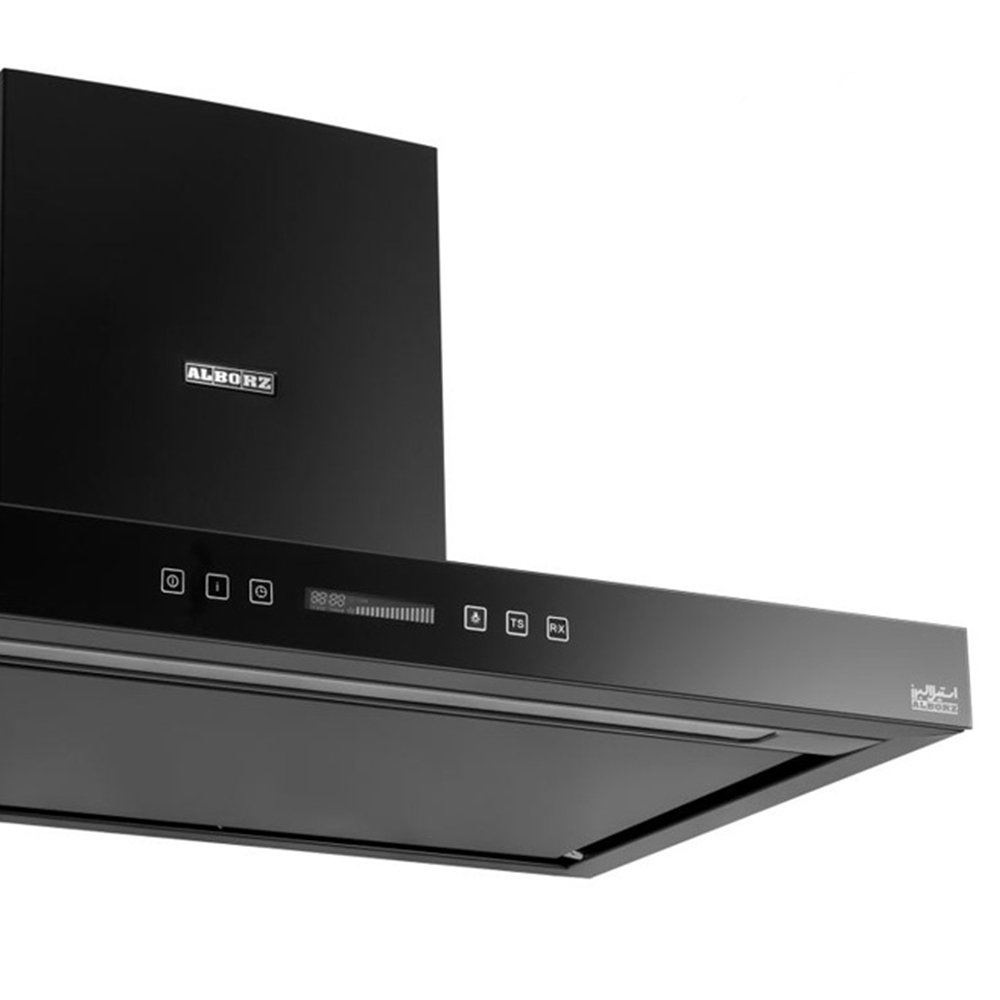 هود استیل البرز مدل 202 B با نمای مشکی و عرض 90 سانتی متر | این محصول دارای ریموت کنترل از راه دور به همراه صفحه کلید تمام لمسی میباشد. و دارای کیفبت بالا در تولید و قطعات میباشد