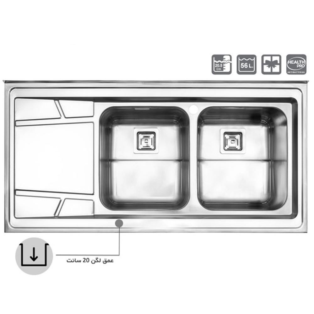 ابعاد سینک : طول 120 سانتیمتر و عرض 60 سانتیمتر