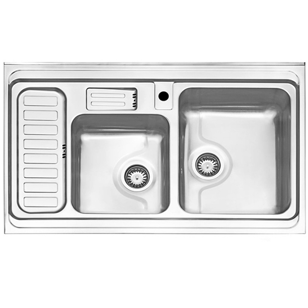 سینک استیل البرز 812 روکار با ابعاد 100*60 سانتی متر این سینک دارای جا مایع به همراه جا اسکاجی بر روی سینک میباشد از ویژگی های این محصول میتوان به عمق لگن آن اشاره نمود