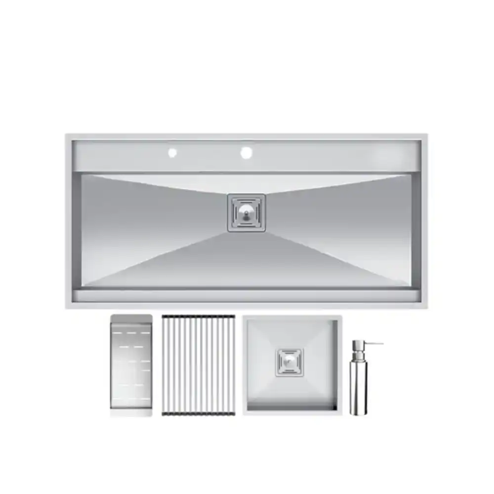 سینک مدل BCN-104P توکار این محصول به صورت تک لگن پله دار بزرگ با ابعاد 104 * 50 سانتی متر و کیفیت فوق العاده بالا میباشد. از ویژگی های بارز این محصول میتوان به عمق لگن فوق العاده 25 سانتی متری و پله مجزا برای محل نصب شیر برای جلوگیری از پاشیدن آب روی صفحه کابینت اشاره نمود