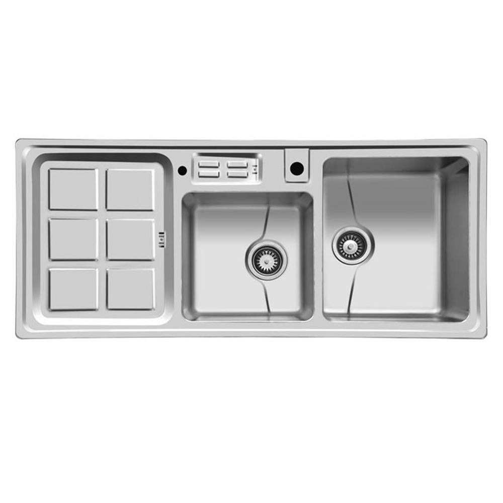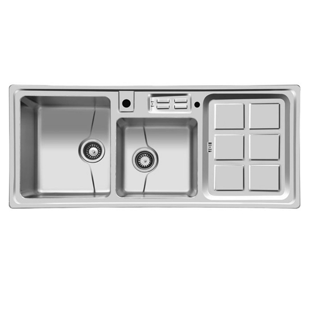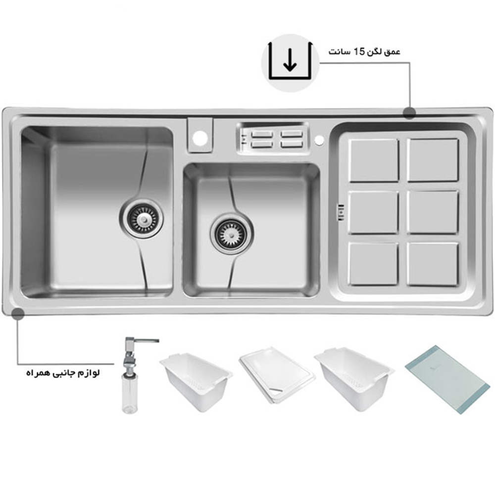 سینک اخوان توکار مدل 360 دارای ابعاد 120 * 52 سانتی متری و ورق 0/6 میلیمتری با کیفیت. تفاوت این سینک با سینک 318 اخوان در لگن میباشد که در این سینک لگن ها با سینی یک تکه میباشد ولی در سینک 318 لگن ها از سینک جدا بوده و بعد به سینی جوش داده میشود. این محصول به خاطر لگن یکپارچه ضخامت خوبی ندارد