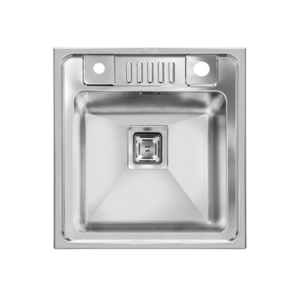 سینک اخوان مدل 382 توکار این محصول دارای ابعاد 46 * 51 سانتی متر میباشد و تولید شده با ورق استیل 1 میلیمتری و عمق لگن 20 سانت به همراه جا مایع بر روی سینک تولید میگردد