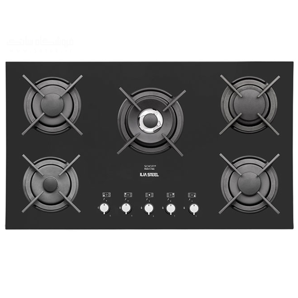 گاز ایلیا استیل مدل IG 5912 جنس صفحه این گاز شیشه مات SCHOTT ایتالیا و نوع ترموکوبل CAST FUTURA ایتالیا و شیر 210 درجه DEFENDI ایتالیا و سرشعله ها سری لوکس DEFENDI ایتالیا و 18 ماه گارانتی می باشد.