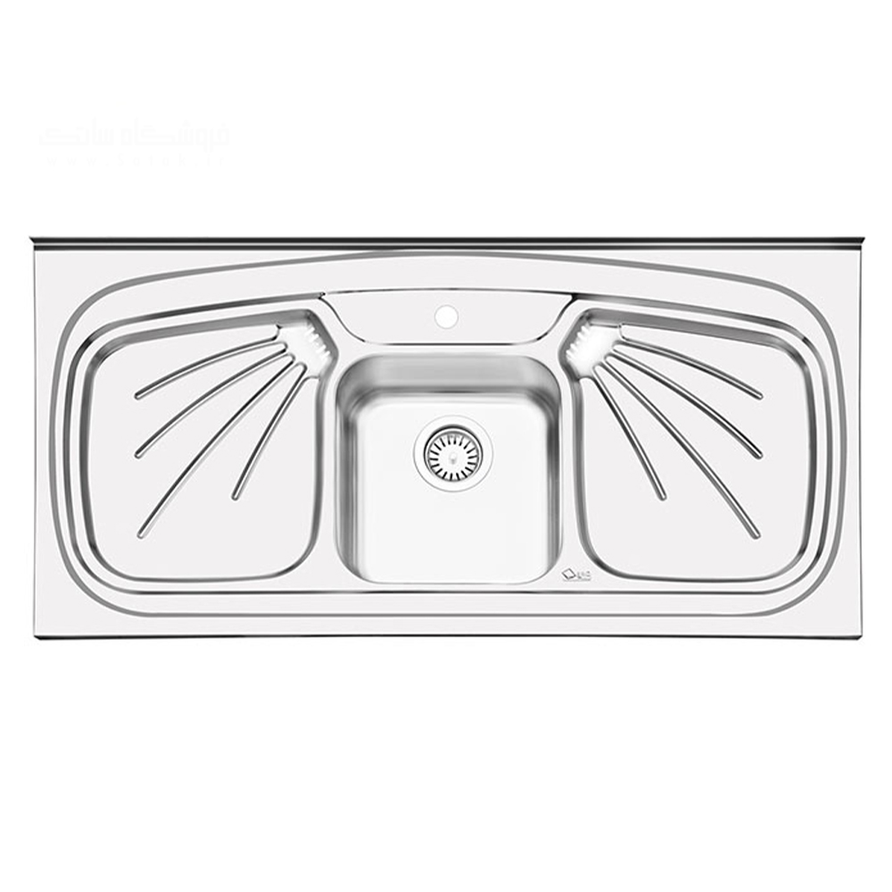 سینک ایلیا استیل 1011 روکار این محصول دارای طراحی اختصاصی این کارخانه با 2 سینی در طرفین به همراه یک لگن با عمق 22 سانت عرضه میگردد