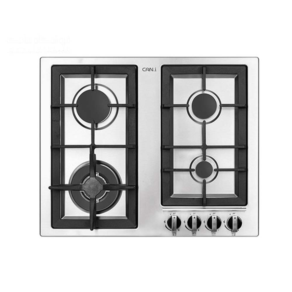 گاز صفحه ای کن Is 6401 با نمای استیل و چهار شعله . شعله پلوپر این اجاق در سمت چپ دستگاه قرار گرفته شده است