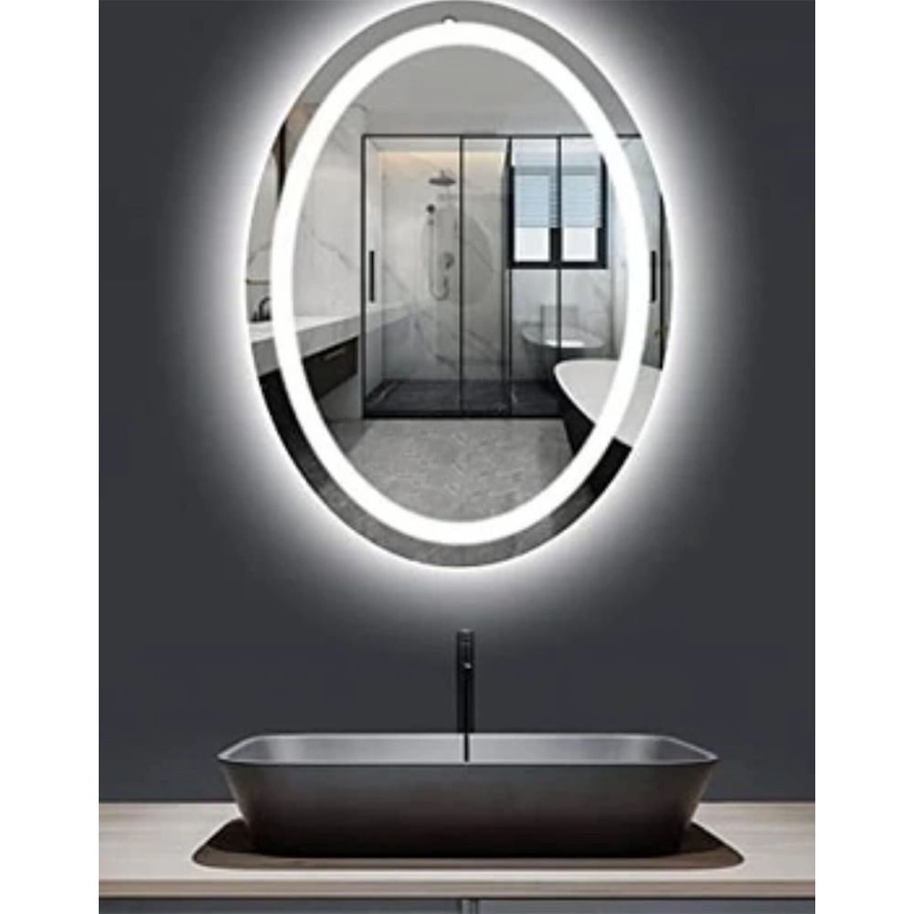 آینه بک لایت و رینگ لایت بیضی 60 * 80سانتیمتر ( ابعاد 1 تا 2 سانتیمتر به خاطر برش و ابزار ممکن است متغییر باشد)