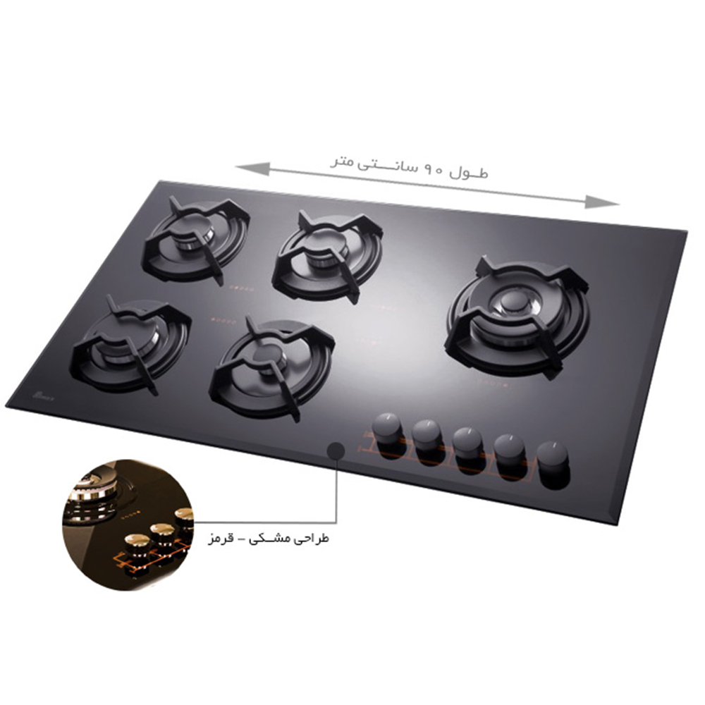جنس صفحه اجاق گاز : شیشه سکوریت شده مشکی با خطوط قرمز