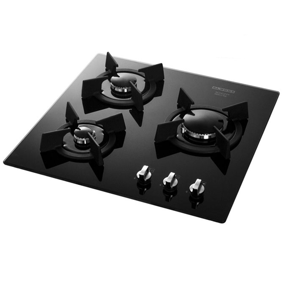 گاز استیل البرز مدل G 3501 دارای 3 شعله با شیشه سکوریت مشکی بدون شعله پلوپز و ساخته شده با قطعات اصلی ایتالیایی : سرشعله ، جرقه زن ، ترموکوبل و ولوم ها