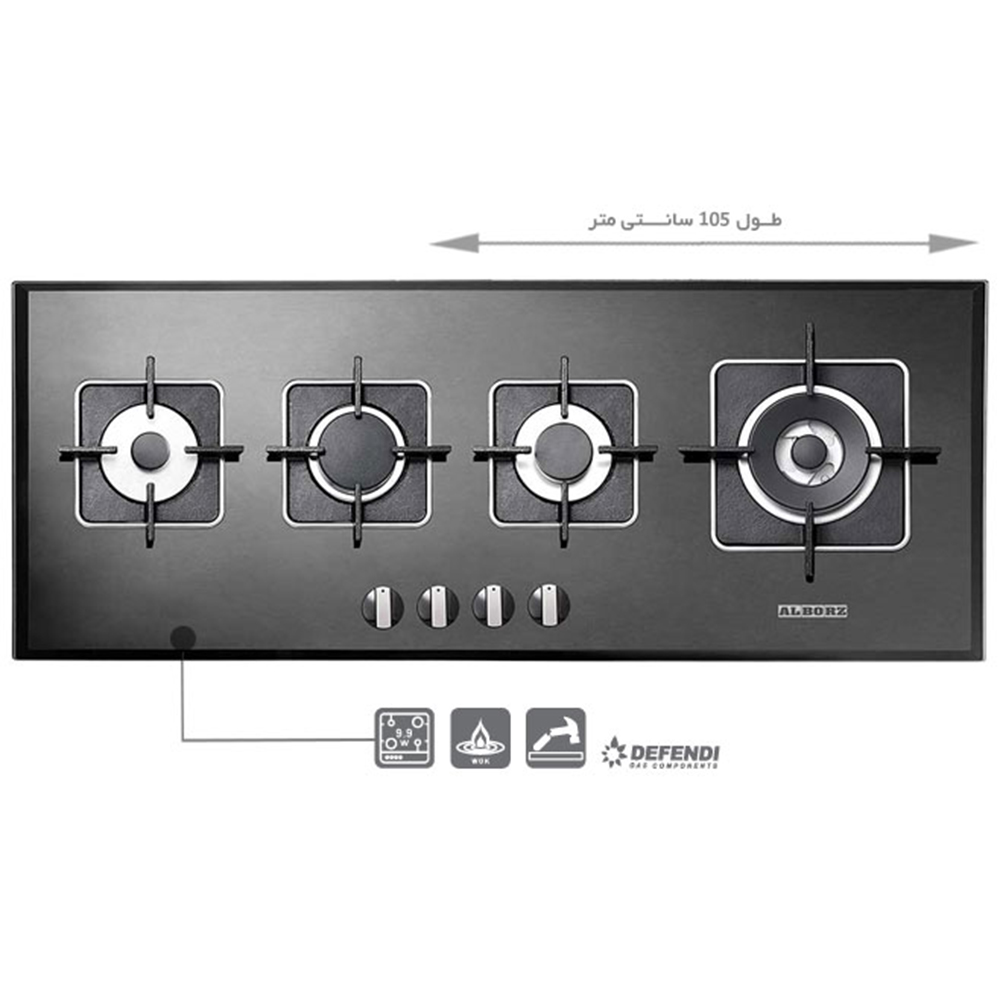 گاز استیل البرز مدل G 4101 این مدل اجاق گاز رومیزی دارای عرض 105 سانتی متر مناس برای کابینت های با عمق کم و توان حرارت 9.9 کیلو وات به همراه پلوپز راست محصول